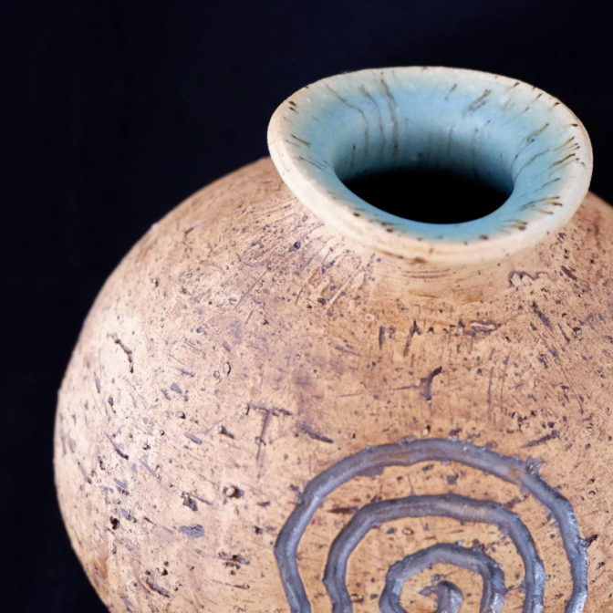 比較的口を小さめにし、お庭に咲いた季節の花やつる草一本でも美しく飾れる花器を目指しました。