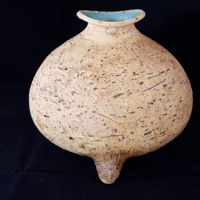 小石などが混じってザックリした質感の土の表面に釉薬を薄く重ねて、土味のする色あいを出しました。