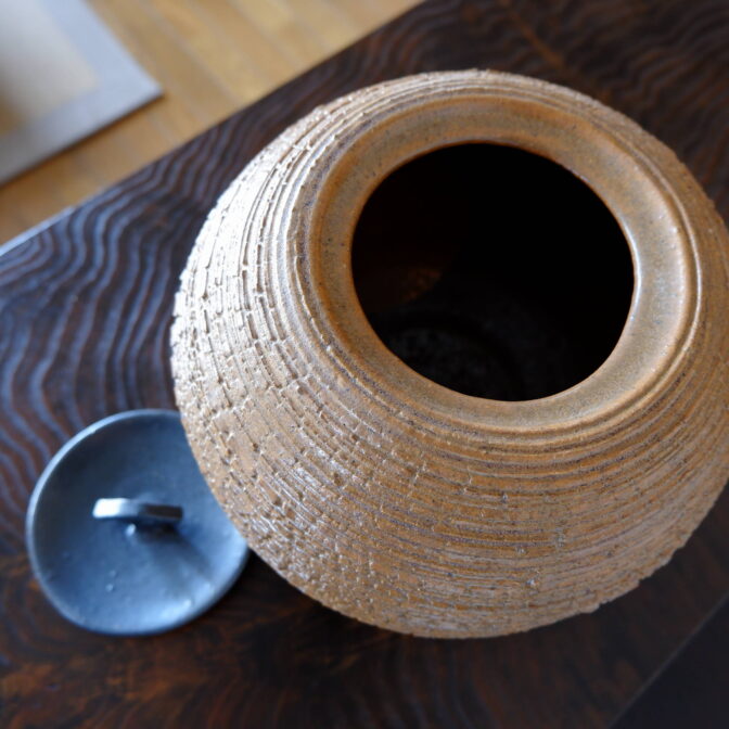 蓋は微妙な艶のあるマット系の黒釉で仕上げています。