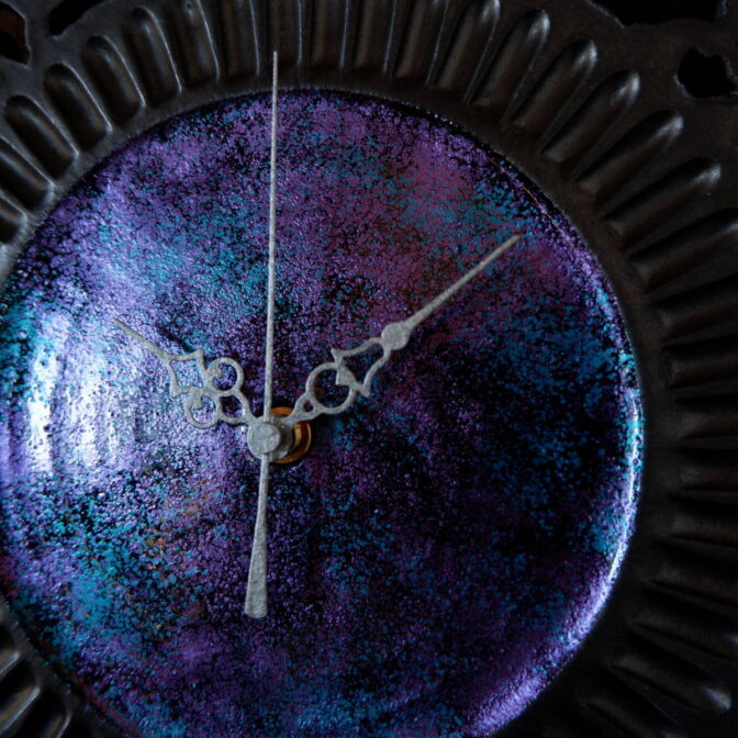 黒ゴシック漆塗り壁掛け時計青紫1 径31cm やちむん 沖縄