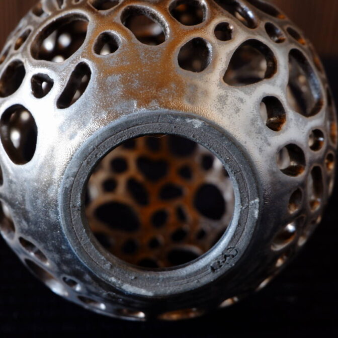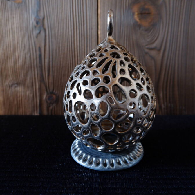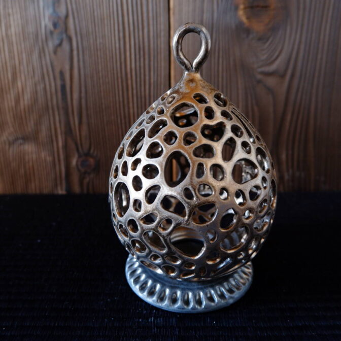 全体に透かし彫りを施したキャンドルホルダーです。