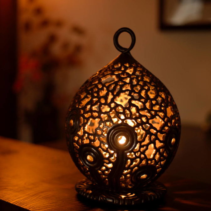 【SALE】黒金彩透し彫りインテリアランプ1