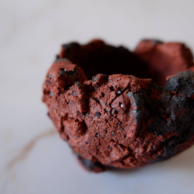 - 木のような炭のようなゴツゴツとした模様が力強く、色も素敵でした。 適度に厚みがあるのと、底穴がいくつか空いていて水捌けが良さそうなところが◎です。