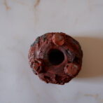 赤い土肌の所々に中粒、小粒の富士砂が顔を出しています。