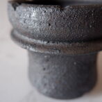 艶を抑えた黒釉は所々に結晶のような細かい凹凸が現われ、粗い土肌と相まって単調ではない質感です。