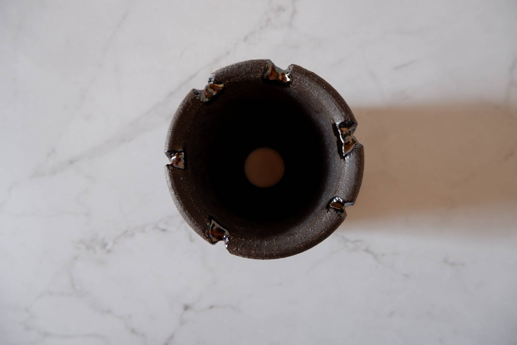 - 同時に購入した砂鉄黒鉢とは色味が異なりこちらもめちゃくちゃカッコいいです。 日光、ライト等の当たり具合により、顔が変わり美しいです。 こちらも春になったら家の植物を植え替えてあげたいと思います。