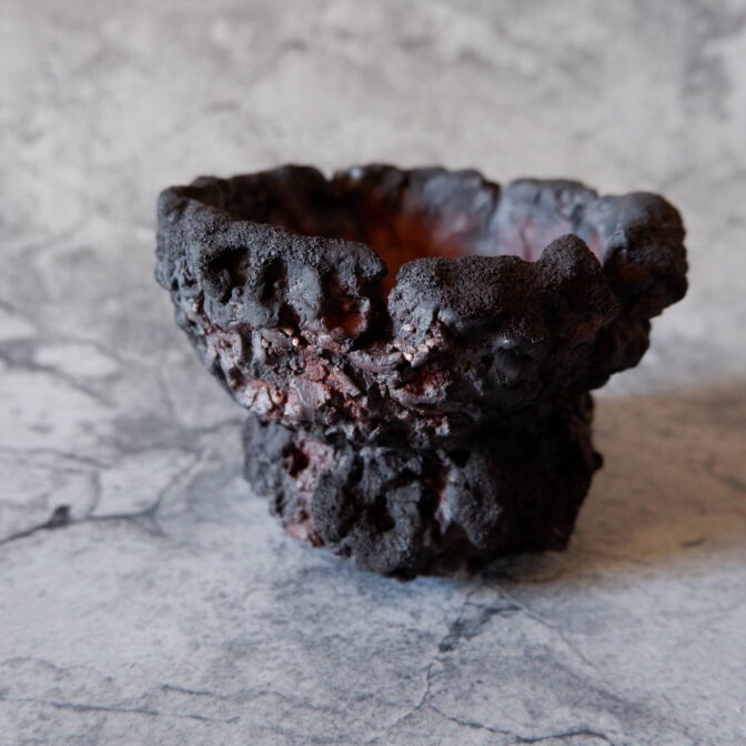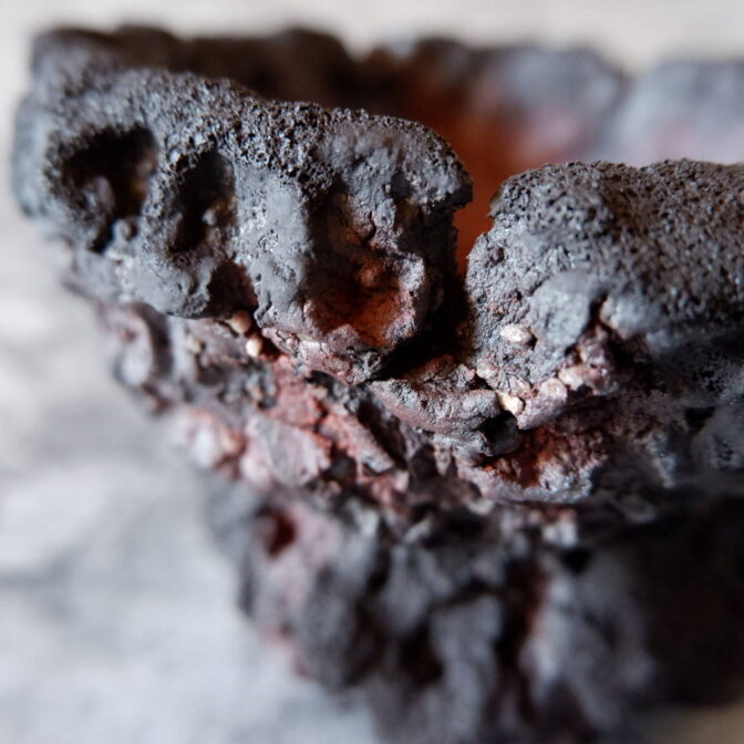 - 木のような炭のようなゴツゴツとした模様が力強く、色も素敵でした。 適度に厚みがあるのと、底穴がいくつか空いていて水捌けが良さそうなところが◎です。