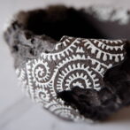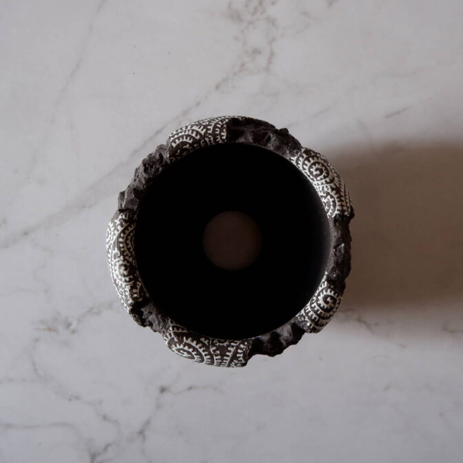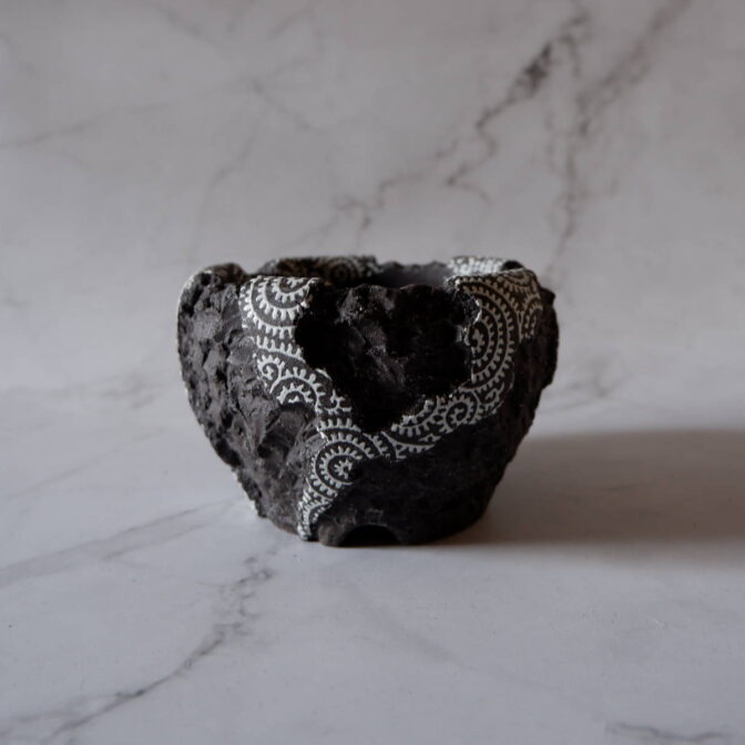 白い模様の抜けや欠けた部分も作品の景色としてお愉しみいただければ幸いです。