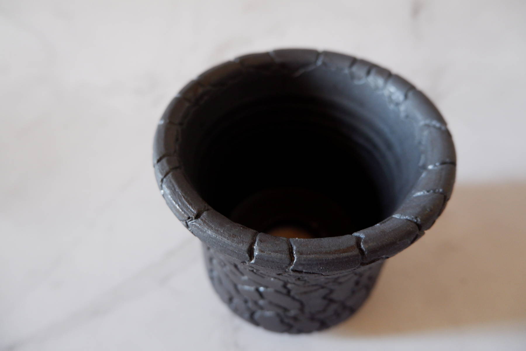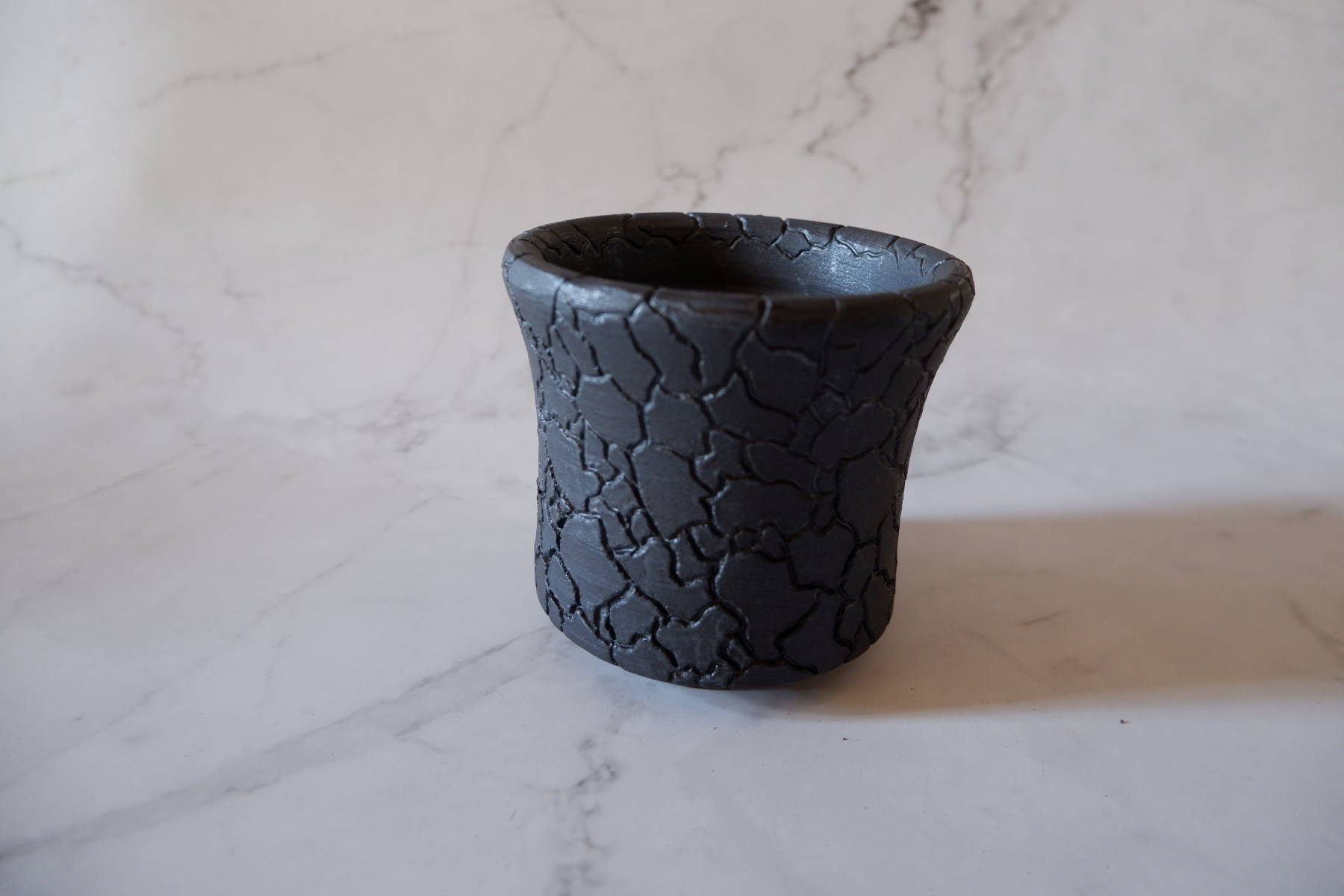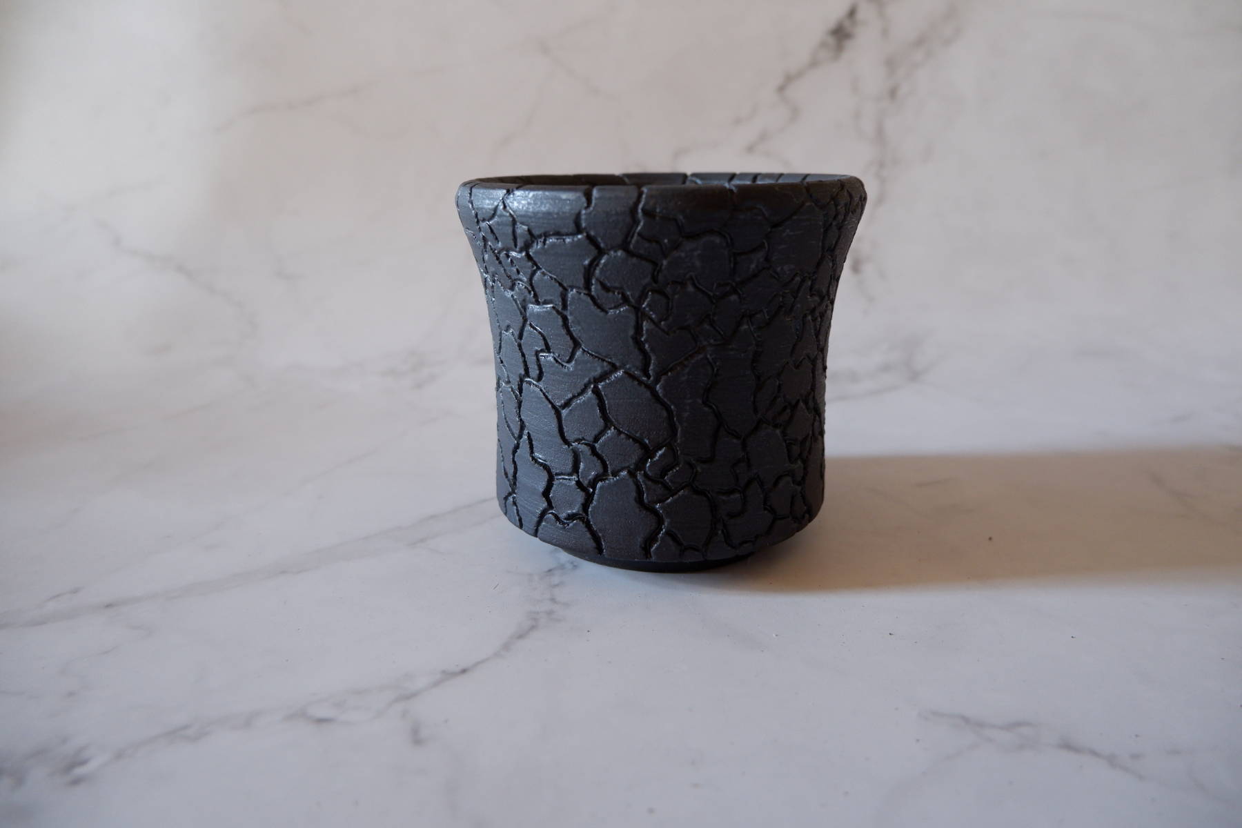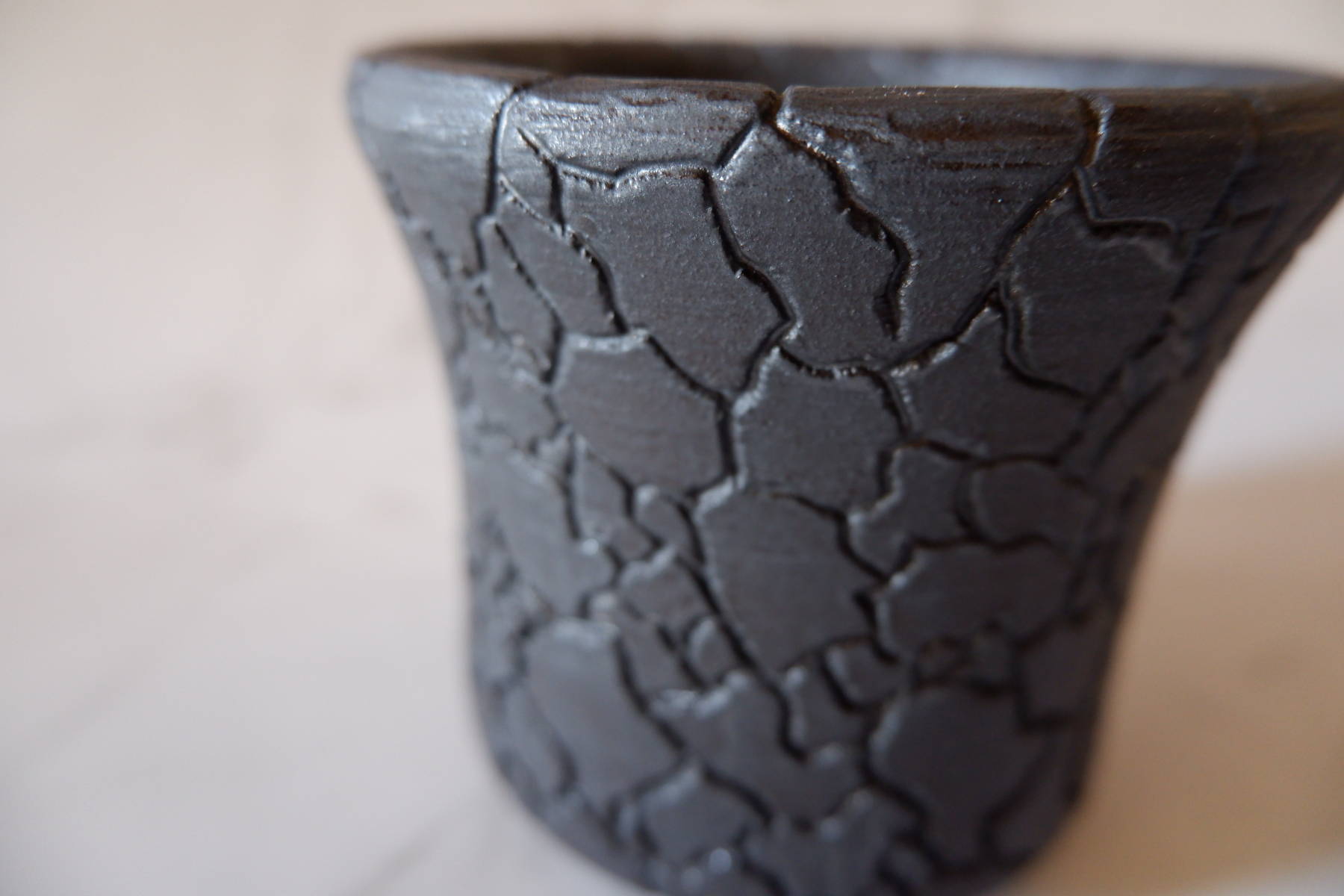 - 木のような炭のようなゴツゴツとした模様が力強く、色も素敵でした。 適度に厚みがあるのと、底穴がいくつか空いていて水捌けが良さそうなところが◎です。
