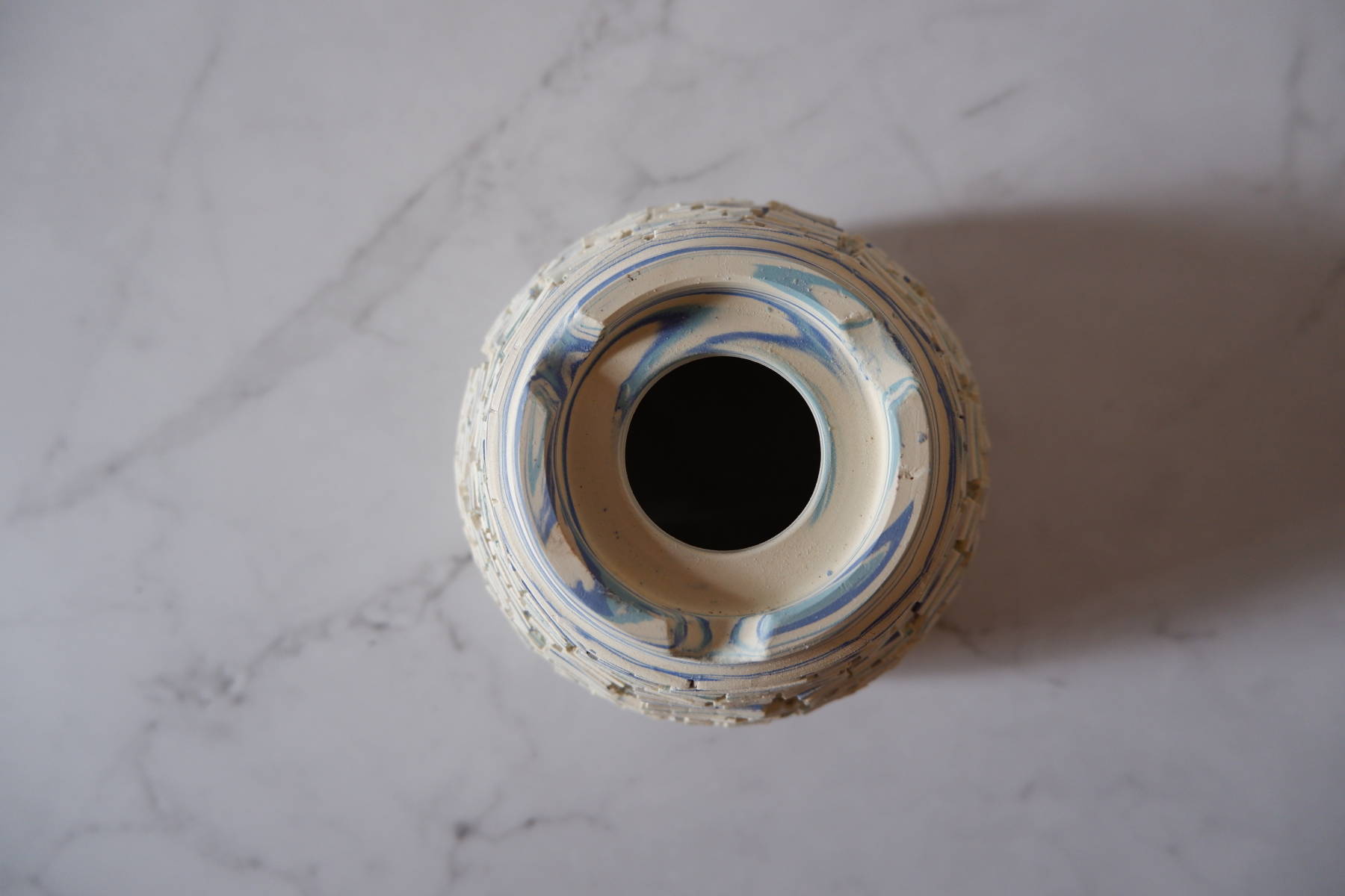 3.5号白青練込み裂紋鉢489 塊根植物 多肉植物 アガベ 盆栽 植木鉢 作家鉢 鉢台 沖縄