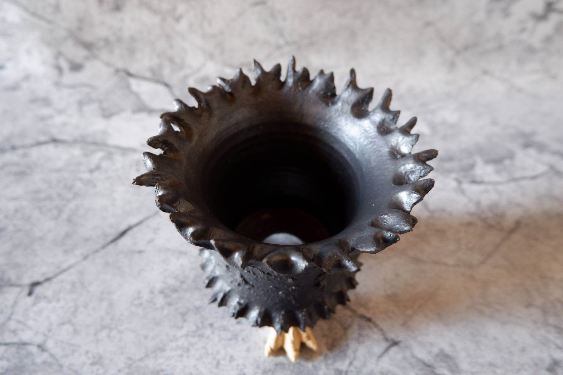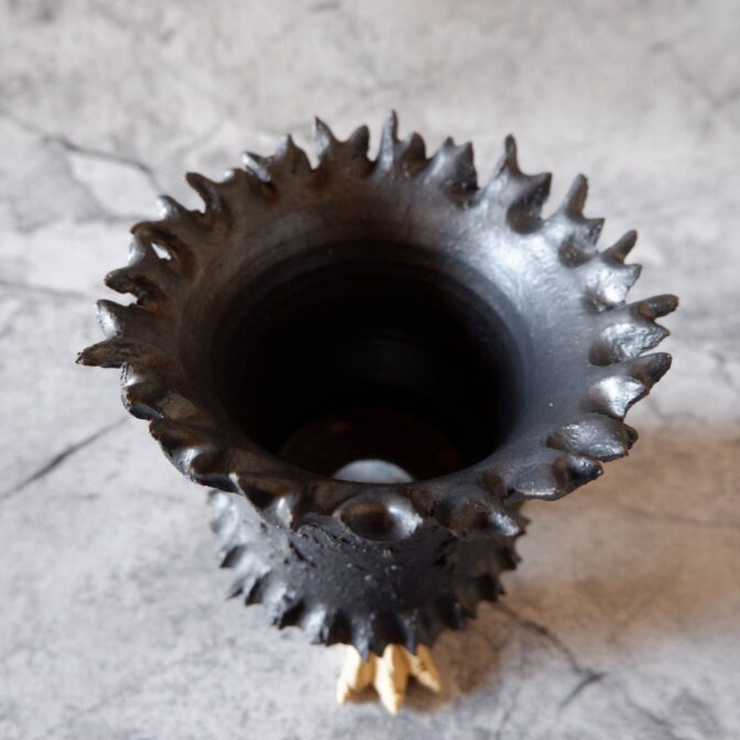 - エイリアン鉢とはよく言ったもので荒々しさが顕著で神々しささえ感じます。 それでいながら彫り込みや角は均等且つバランスが取れていて荒々しさとは対照的に繊細な一面もあります。 同時にデザインの異なる3号鉢を購入しましたがどの作品も素晴らしいです。 また、御直筆の手紙まで頂戴しまして感動しました。 素晴らしい作家さんで、これからも素晴らしい作品たちを生み出し続けて頂きたいと思います。