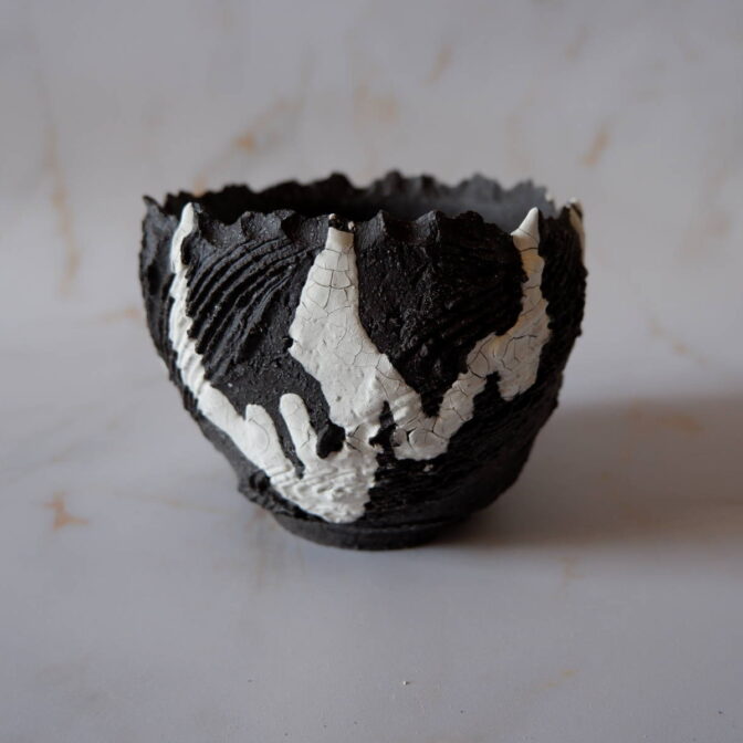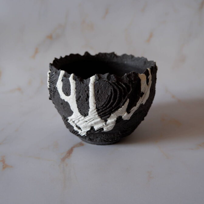 - 5.5号黒白練り込み鉢1