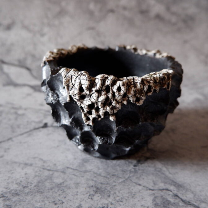• エイリアン鉢とはよく言ったもので荒々しさが顕著で神々しささえ感じます。 それでいながら彫り込みや角は均等且つバランスが取れていて荒々しさとは対照的に繊細な一面もあります。 同時にデザインの異なる3号鉢を購入しましたがどの作品も素晴らしいです。 また、御直筆の手紙まで頂戴しまして感動しました。 素晴らしい作家さんで、これからも素晴らしい作品たちを生み出し続けて頂きたいと思います。