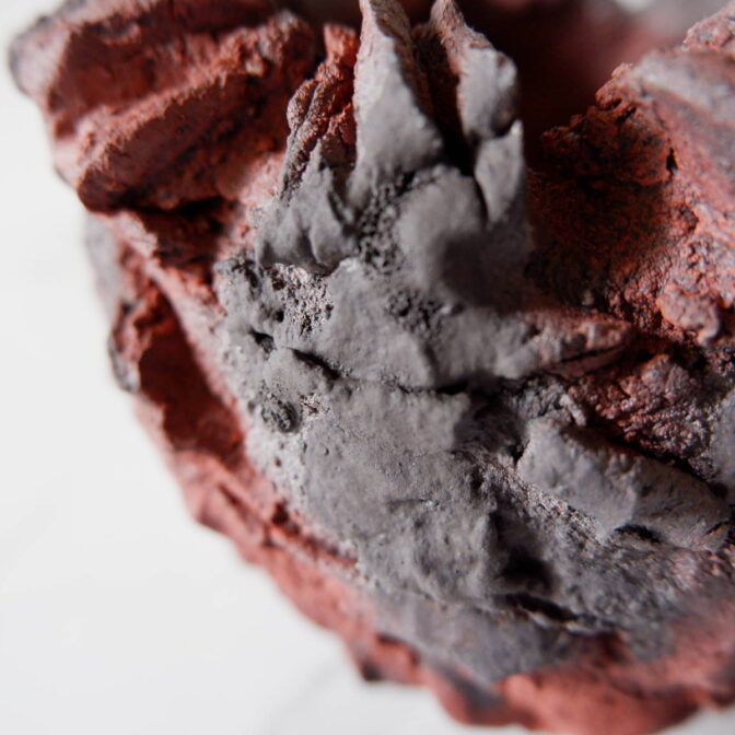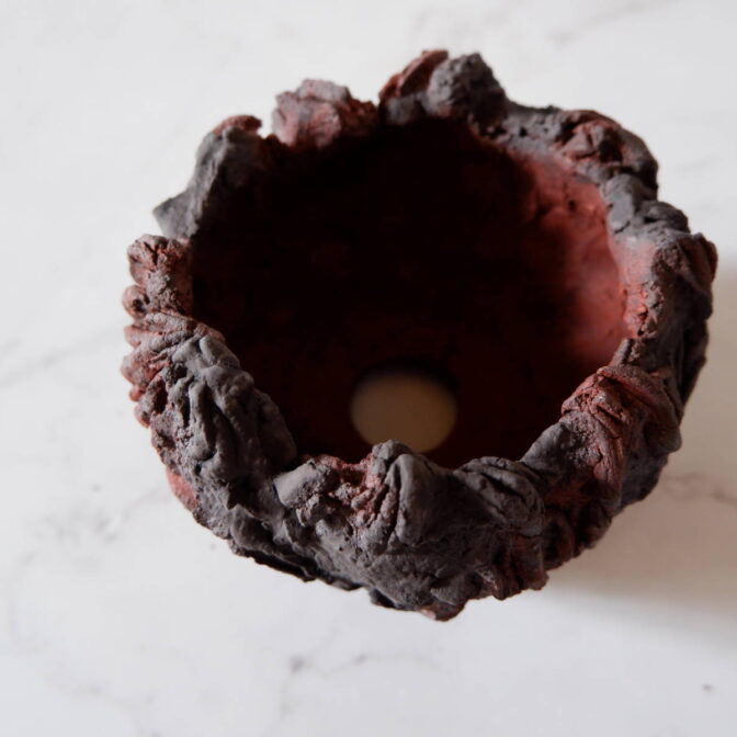 成形中に生じる裂けや歪みは、極力整えず表情として残しました。