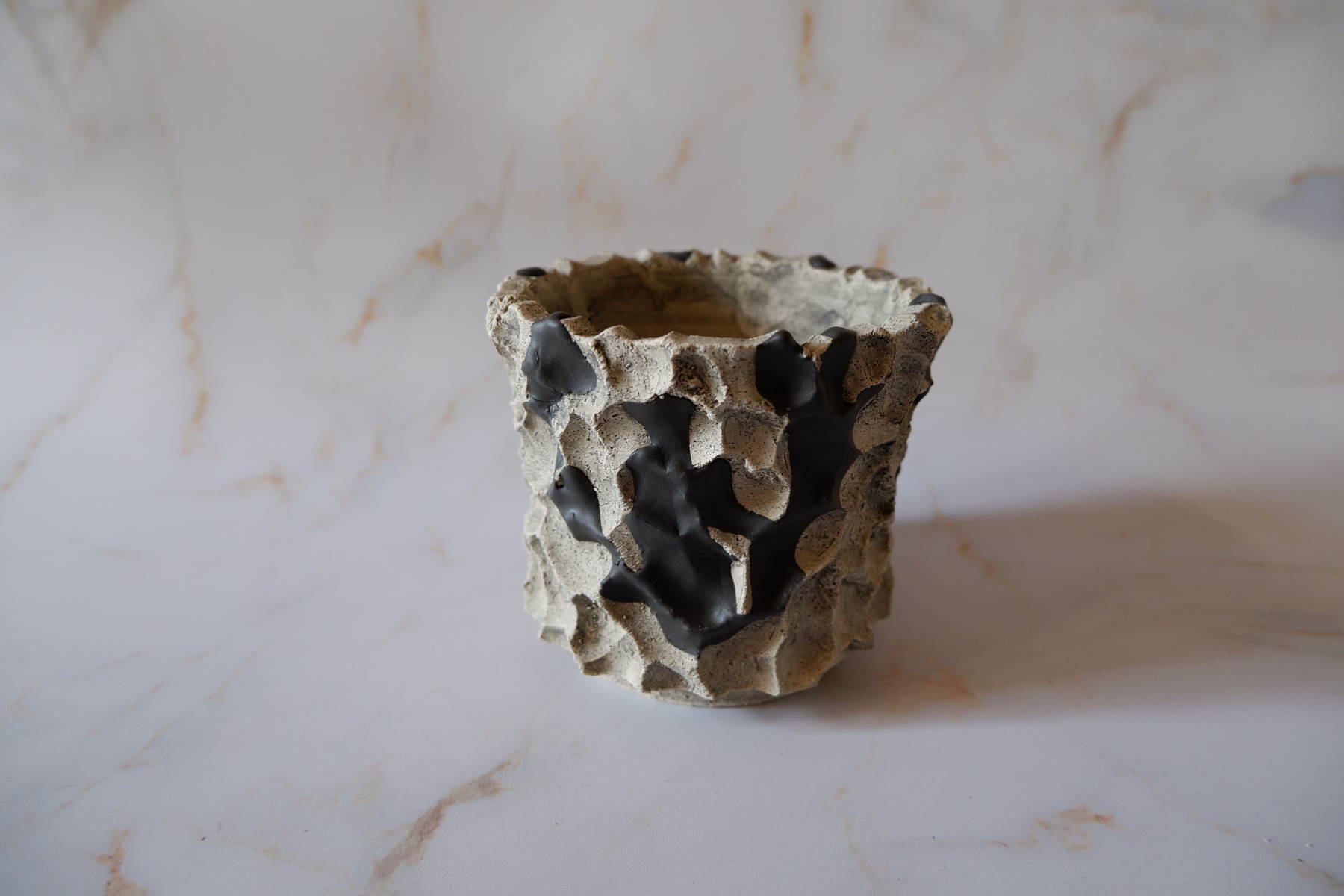 3.5号黒化粧墨流し砂岩鉢374 塊根植物 多肉植物 アガベ 盆栽 植木鉢 作家鉢 鉢皿 沖縄