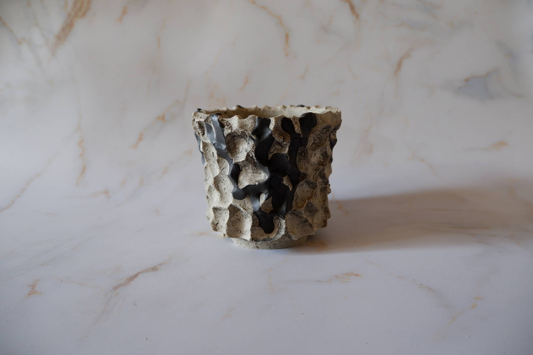 • 木のような炭のようなゴツゴツとした模様が力強く、色も素敵でした。 適度に厚みがあるのと、底穴がいくつか空いていて水捌けが良さそうなところが◎です。