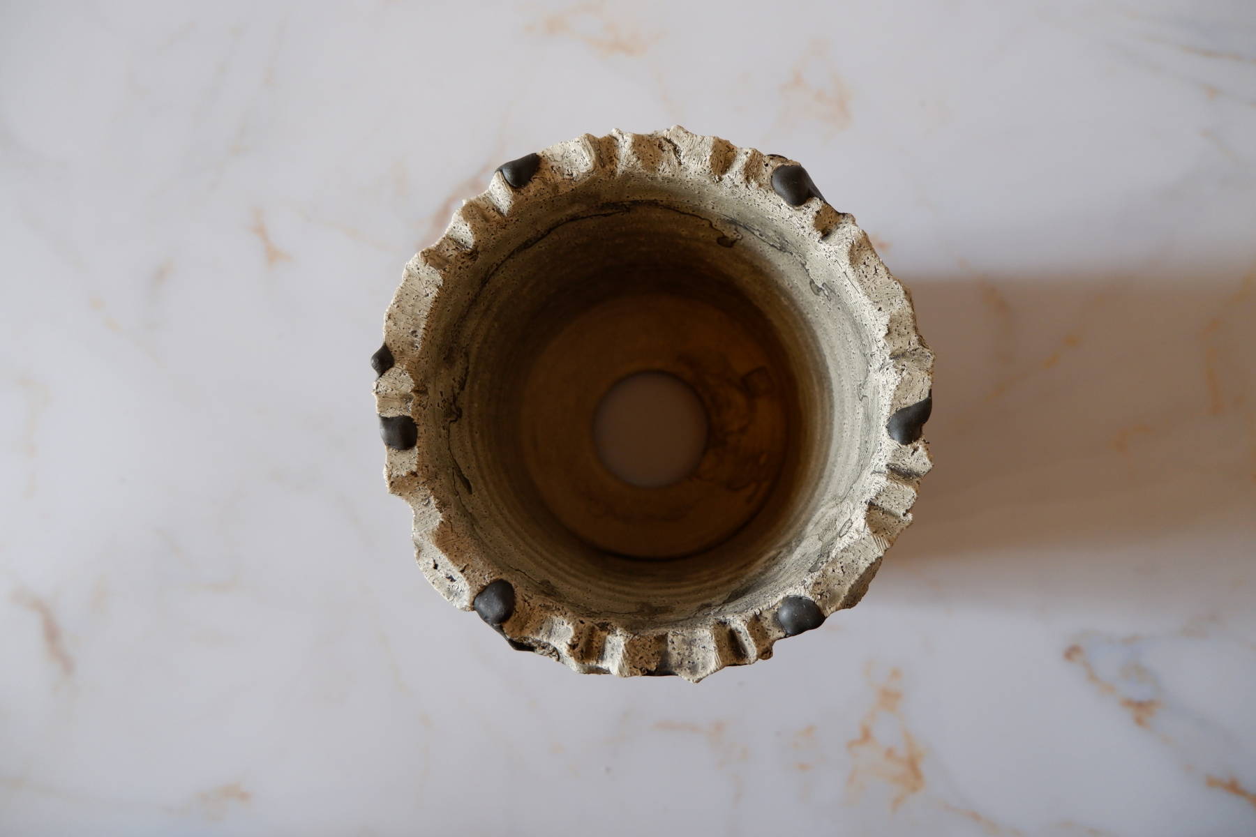 • エイリアン鉢とはよく言ったもので荒々しさが顕著で神々しささえ感じます。 それでいながら彫り込みや角は均等且つバランスが取れていて荒々しさとは対照的に繊細な一面もあります。 同時にデザインの異なる3号鉢を購入しましたがどの作品も素晴らしいです。 また、御直筆の手紙まで頂戴しまして感動しました。 素晴らしい作家さんで、これからも素晴らしい作品たちを生み出し続けて頂きたいと思います。