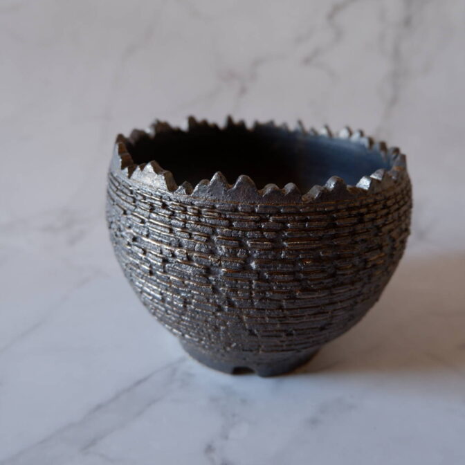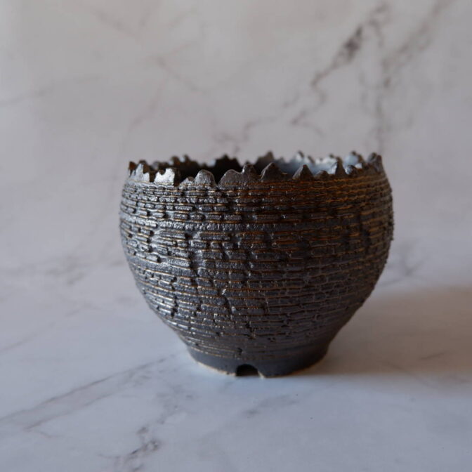- エイリアン鉢とはよく言ったもので荒々しさが顕著で神々しささえ感じます。 それでいながら彫り込みや角は均等且つバランスが取れていて荒々しさとは対照的に繊細な一面もあります。 同時にデザインの異なる3号鉢を購入しましたがどの作品も素晴らしいです。 また、御直筆の手紙まで頂戴しまして感動しました。 素晴らしい作家さんで、これからも素晴らしい作品たちを生み出し続けて頂きたいと思います。