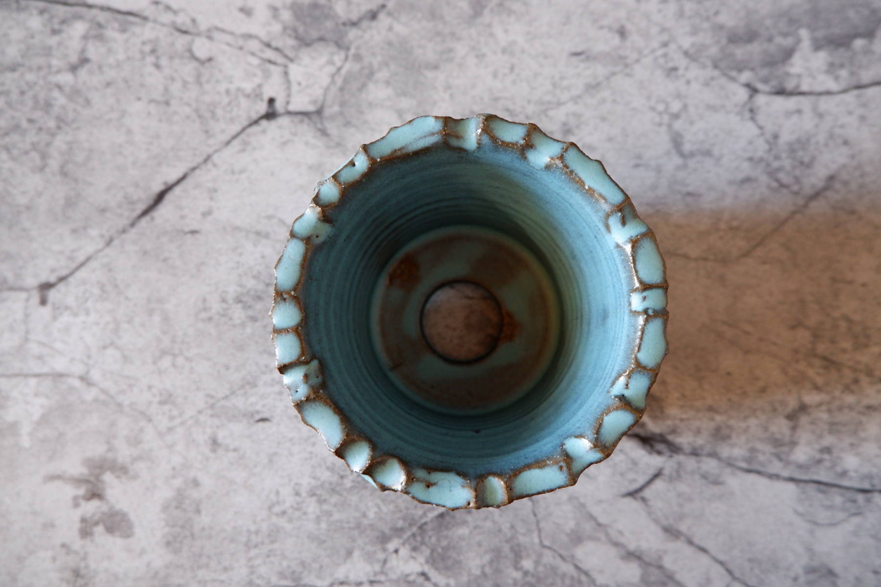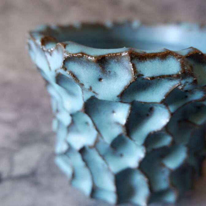 沖縄のヒスイカズラのような鮮やかなブルーで、青磁のような透明感はなくマットな発色です。