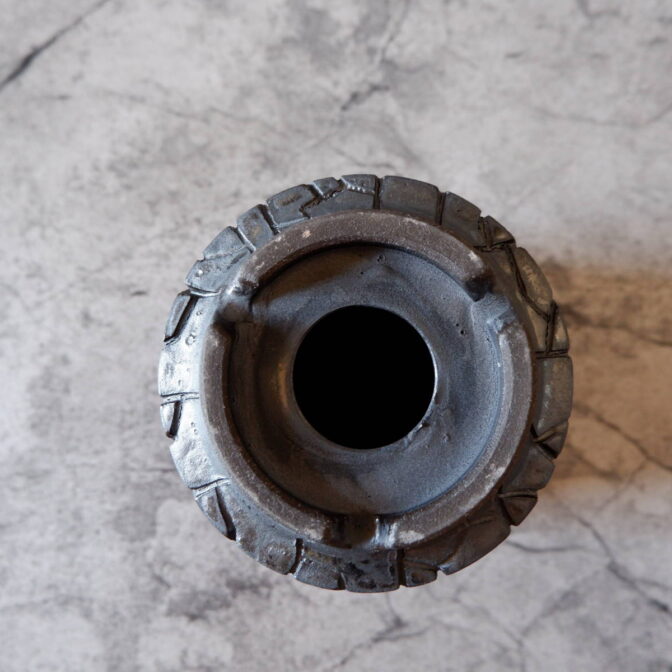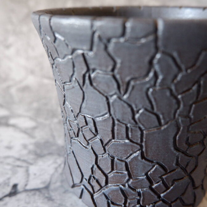 本作は、側面全体に針先でひび割れ模様を描きました。