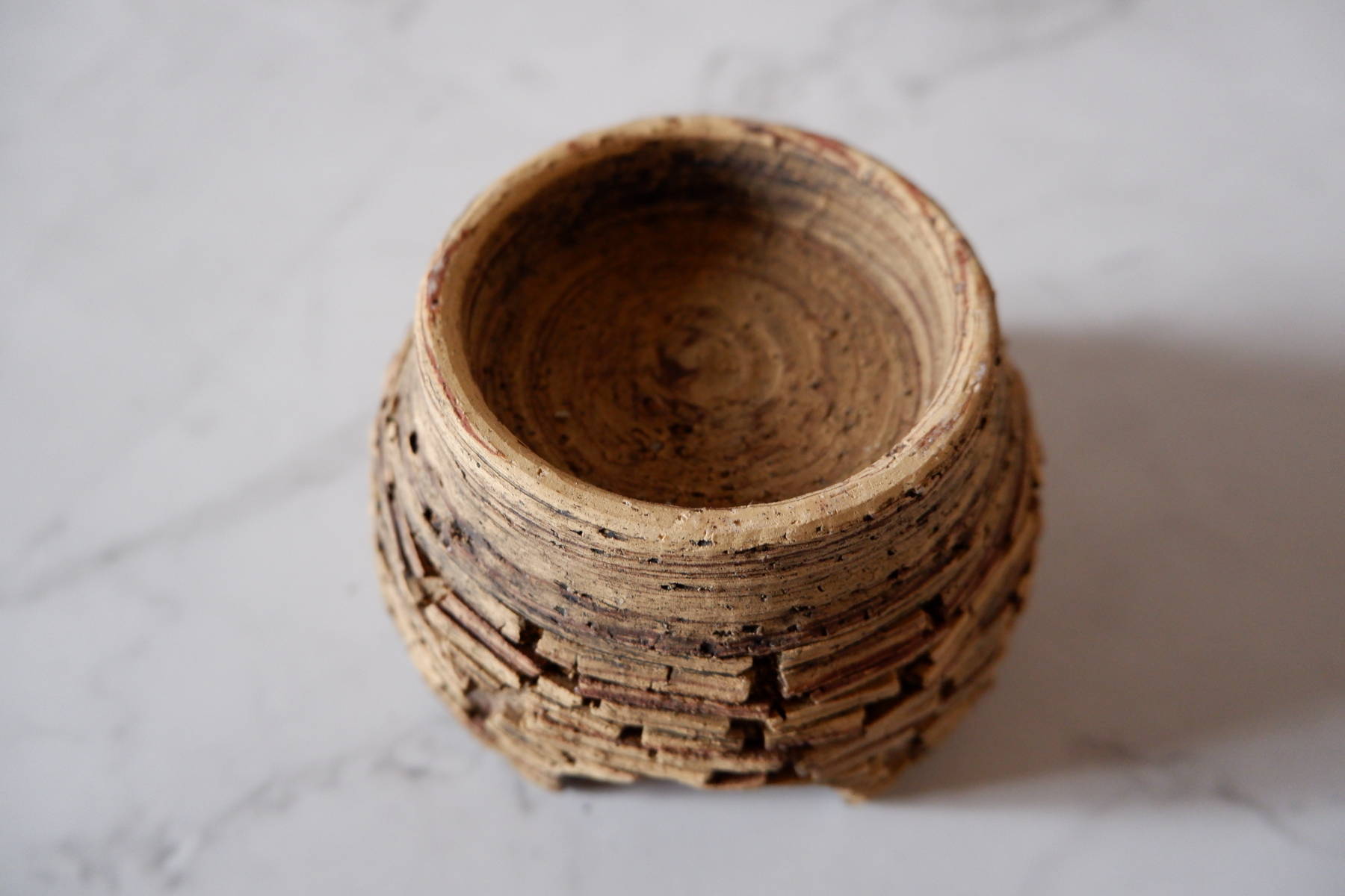 • エイリアン鉢とはよく言ったもので荒々しさが顕著で神々しささえ感じます。 それでいながら彫り込みや角は均等且つバランスが取れていて荒々しさとは対照的に繊細な一面もあります。 同時にデザインの異なる3号鉢を購入しましたがどの作品も素晴らしいです。 また、御直筆の手紙まで頂戴しまして感動しました。 素晴らしい作家さんで、これからも素晴らしい作品たちを生み出し続けて頂きたいと思います。
