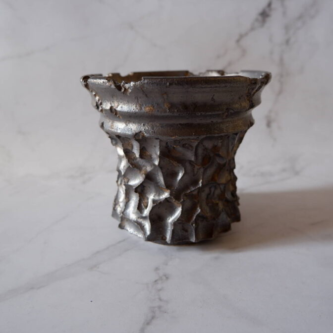 本作は、側面を深く荒く彫り込み、縁にはクラックを加えました。