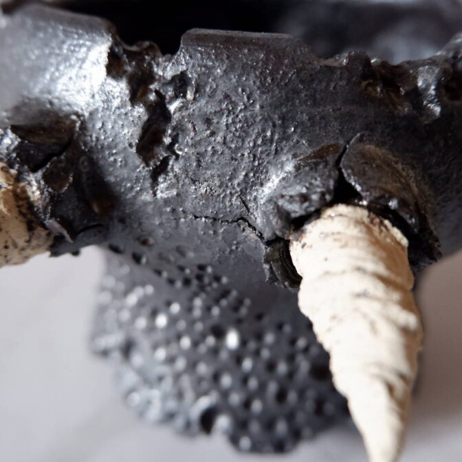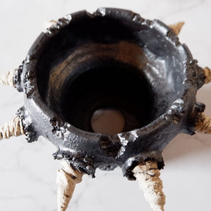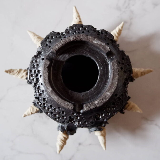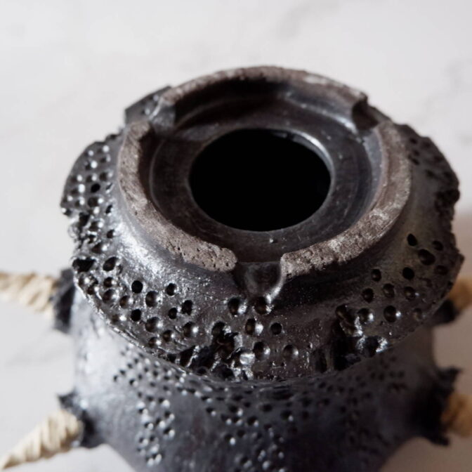 その際生じた内側の穴や隙間は全て土で埋めて閉じていますが、外側のヒビや歪みなどは極力そのまま作風として残しました。