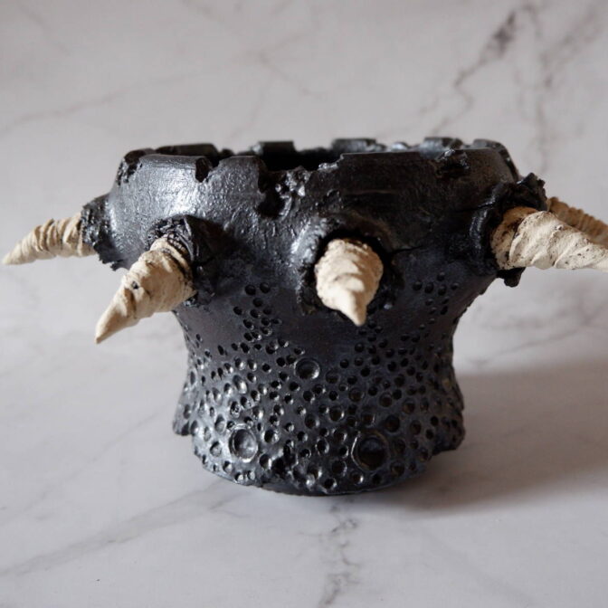 - エイリアン鉢とはよく言ったもので荒々しさが顕著で神々しささえ感じます。 それでいながら彫り込みや角は均等且つバランスが取れていて荒々しさとは対照的に繊細な一面もあります。 同時にデザインの異なる3号鉢を購入しましたがどの作品も素晴らしいです。 また、御直筆の手紙まで頂戴しまして感動しました。 素晴らしい作家さんで、これからも素晴らしい作品たちを生み出し続けて頂きたいと思います。