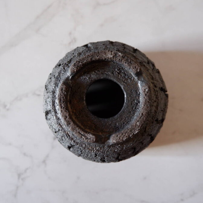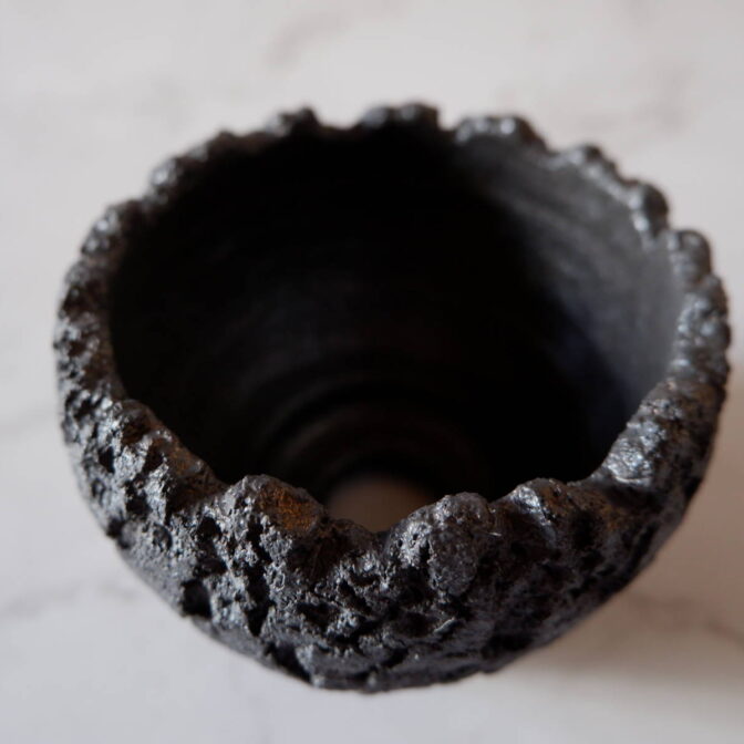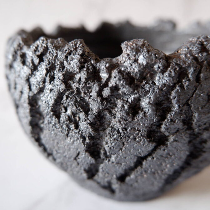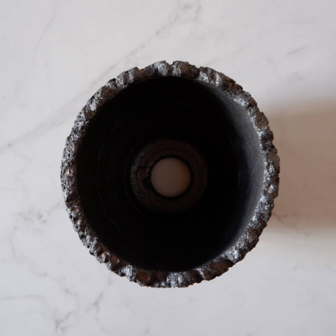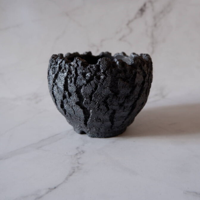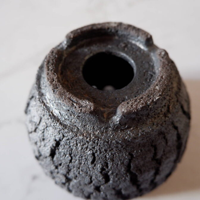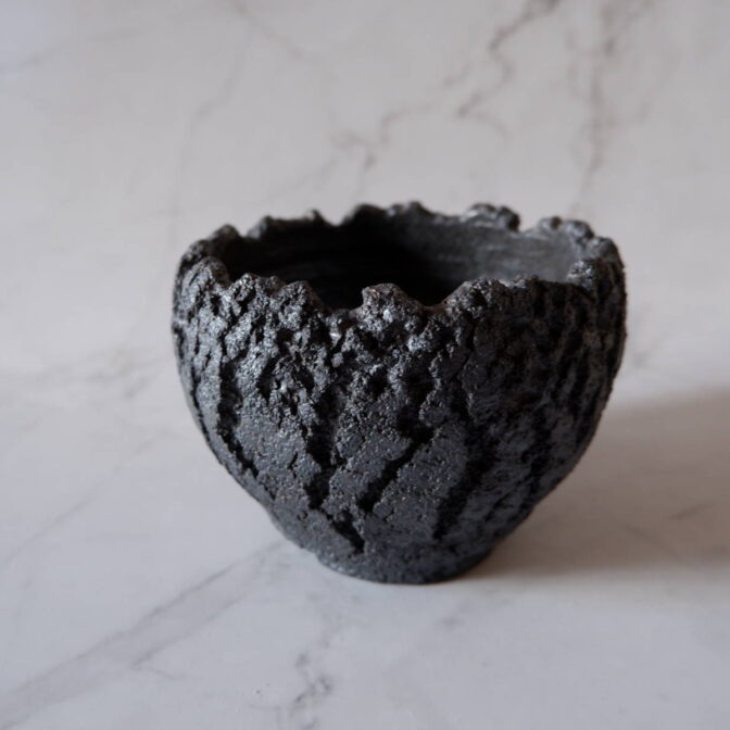 - 木のような炭のようなゴツゴツとした模様が力強く、色も素敵でした。 適度に厚みがあるのと、底穴がいくつか空いていて水捌けが良さそうなところが◎です。