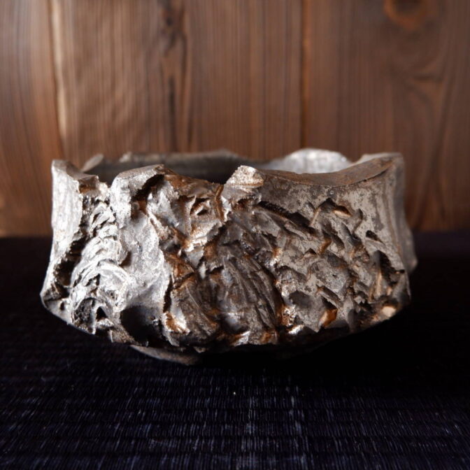 本品は、側面を岩壁のように彫り出して独特の景色にしました。