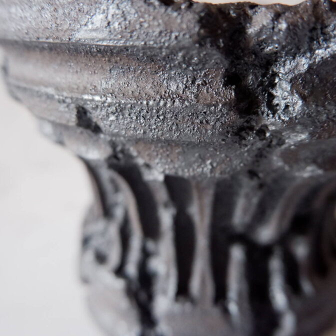 - 同時に購入した砂鉄黒鉢とは色味が異なりこちらもめちゃくちゃカッコいいです。 日光、ライト等の当たり具合により、顔が変わり美しいです。 こちらも春になったら家の植物を植え替えてあげたいと思います。
