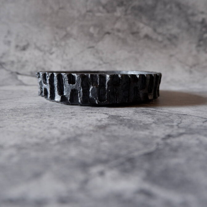 - 木のような炭のようなゴツゴツとした模様が力強く、色も素敵でした。 適度に厚みがあるのと、底穴がいくつか空いていて水捌けが良さそうなところが◎です。