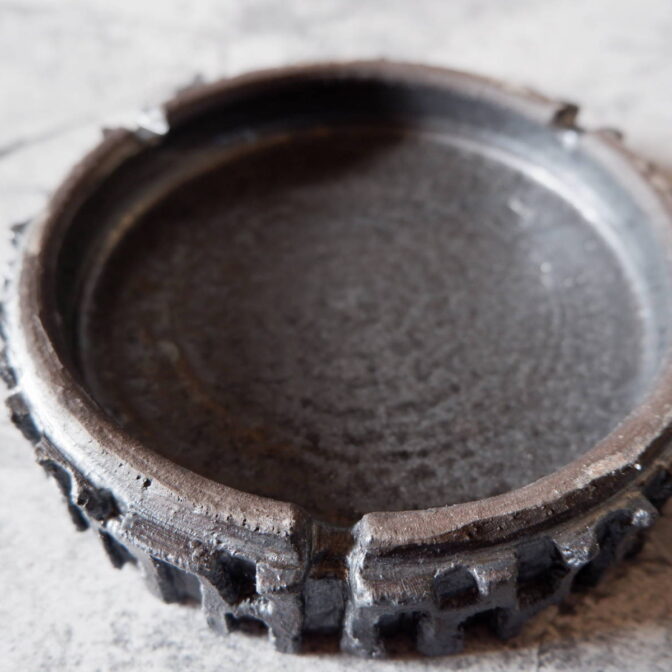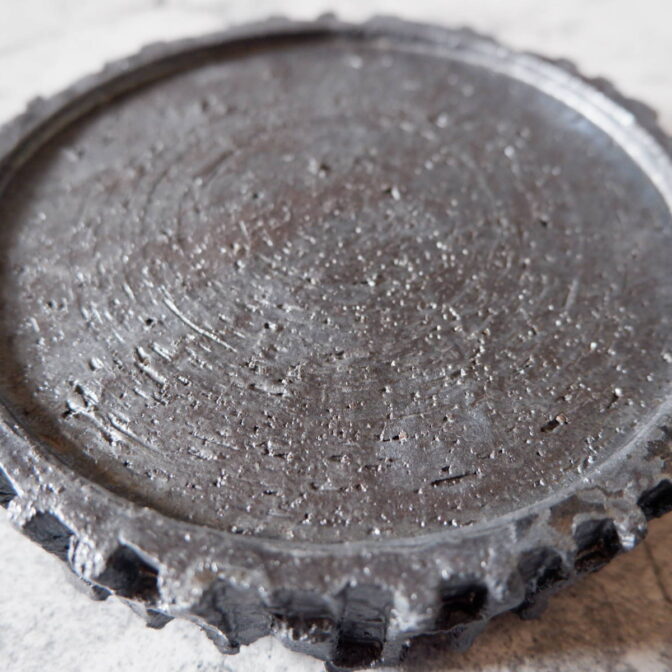 作風として縁や表面の凹凸が尖っている部分もありますので、お子様など、置き場所やお取り扱いにはご留意くださいますよう、お願いいたします。