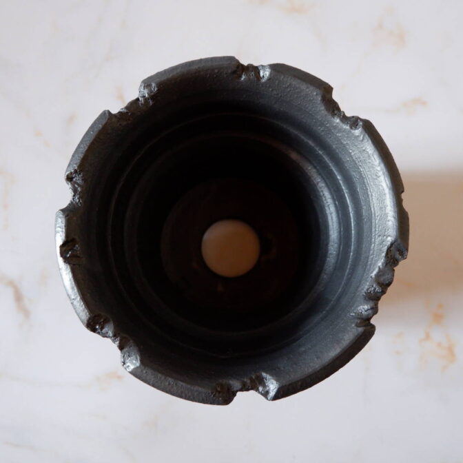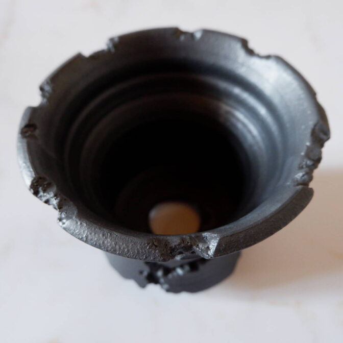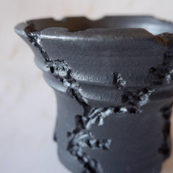 本作は、側面に亀裂のような荒く深い彫りを施しました。