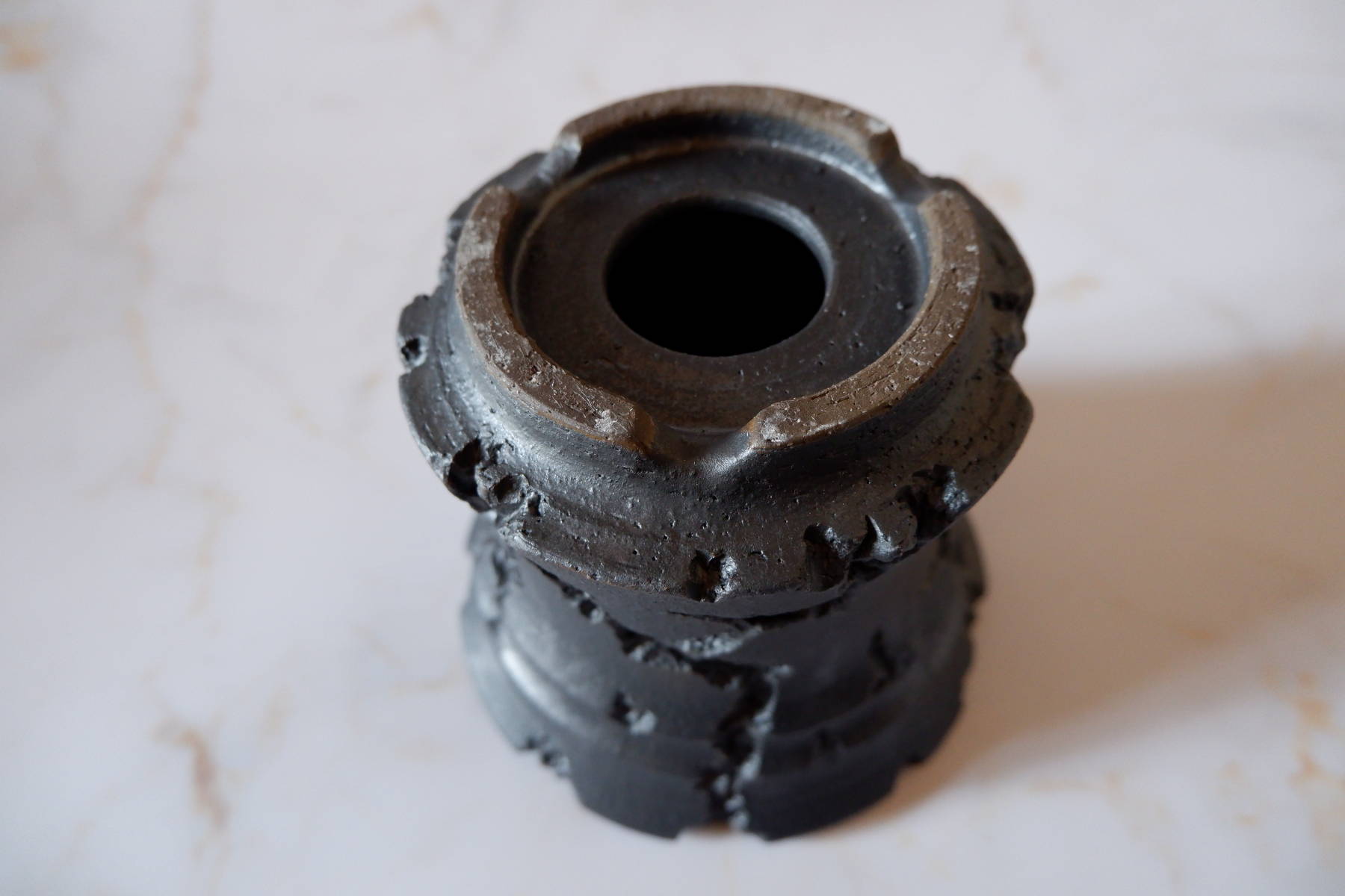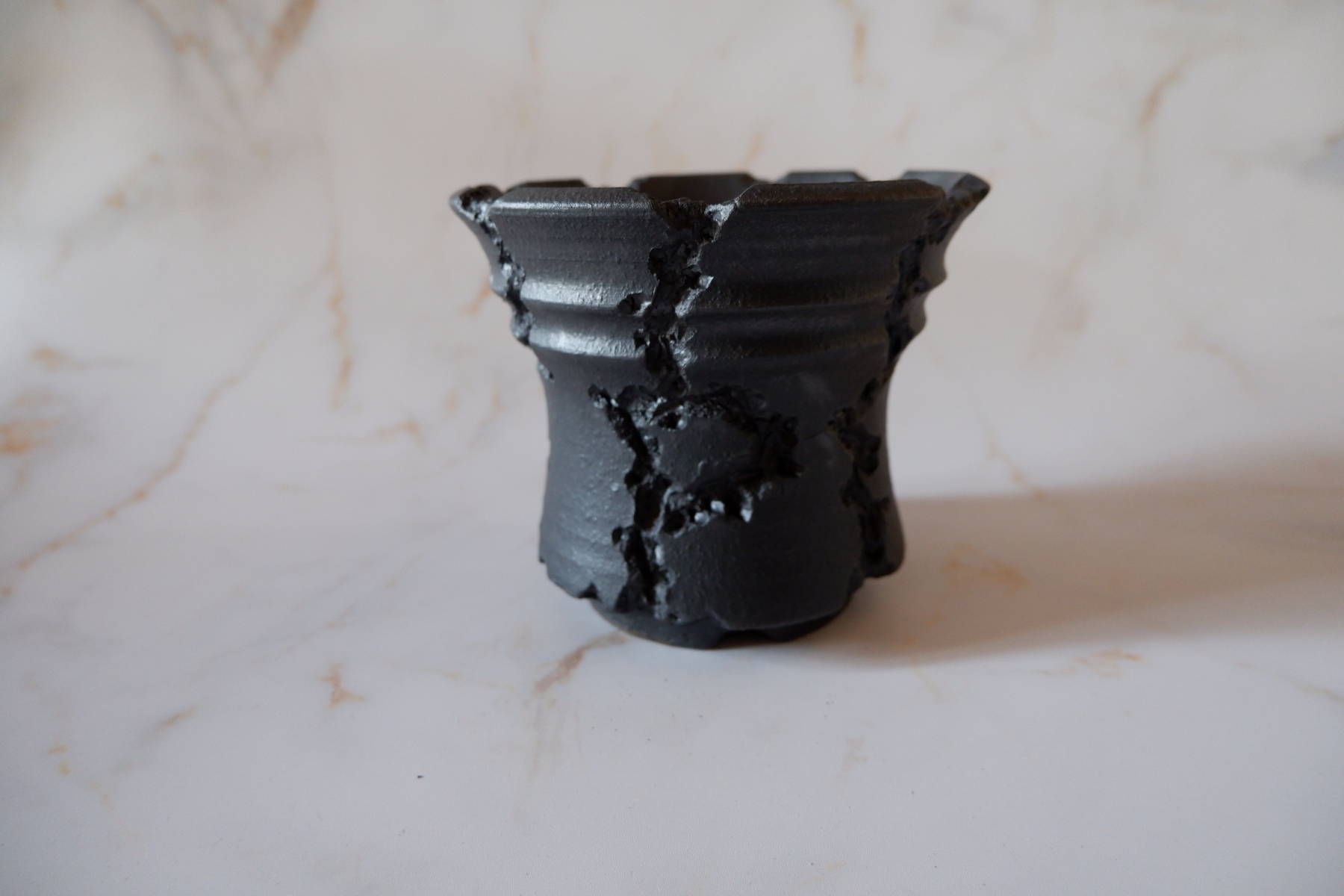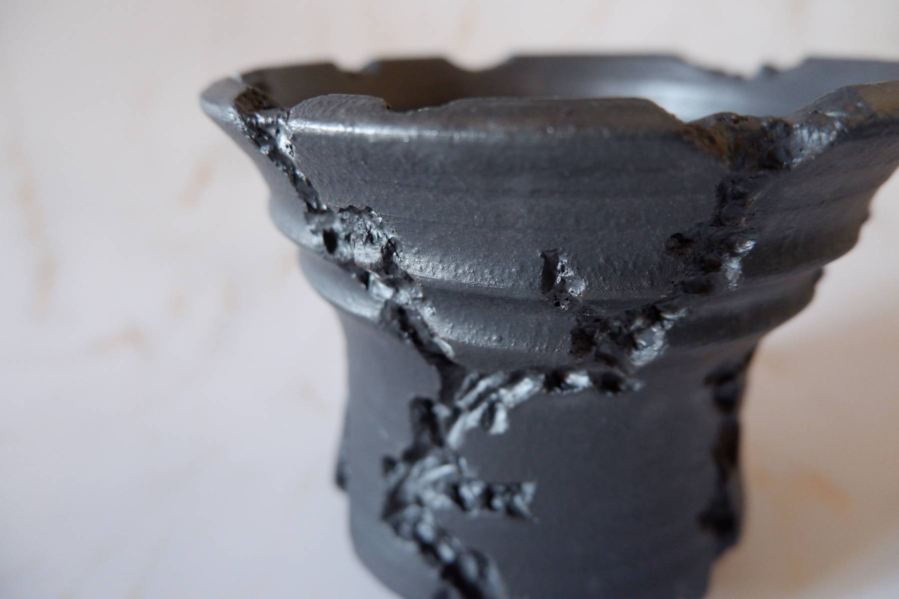 - 木のような炭のようなゴツゴツとした模様が力強く、色も素敵でした。 適度に厚みがあるのと、底穴がいくつか空いていて水捌けが良さそうなところが◎です。