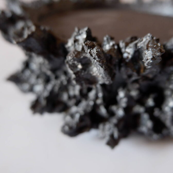 - 木のような炭のようなゴツゴツとした模様が力強く、色も素敵でした。 適度に厚みがあるのと、底穴がいくつか空いていて水捌けが良さそうなところが◎です。