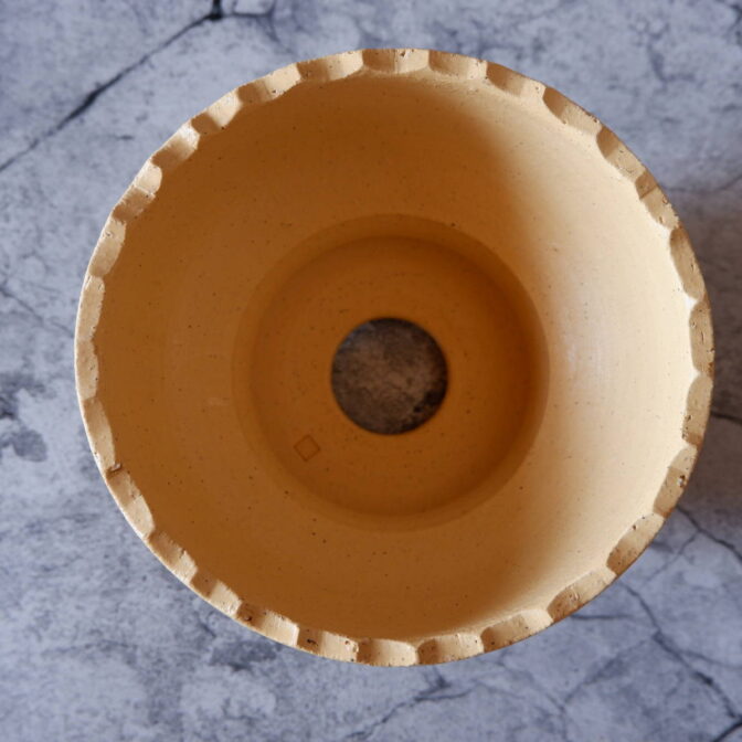 - 木のような炭のようなゴツゴツとした模様が力強く、色も素敵でした。 適度に厚みがあるのと、底穴がいくつか空いていて水捌けが良さそうなところが◎です。