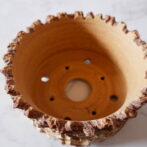 植物を固定する針金を通すための面取りした小穴を、中央の大きな底穴の周囲に4ヵ所、各1個ずつ設けました。
