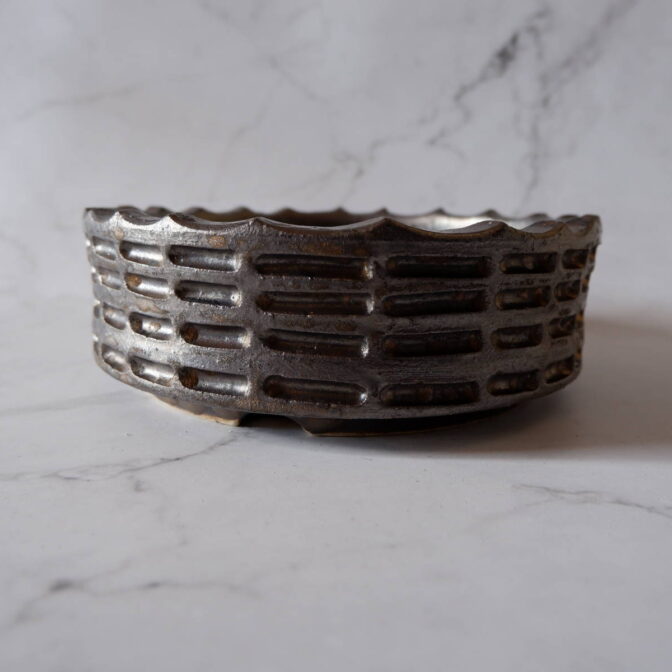 本作は、全体に彫りを施した盆栽向けの浅鉢です。
