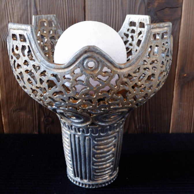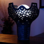 縄文時代の火焔型土器をモチーフにした陶器製のランプです。