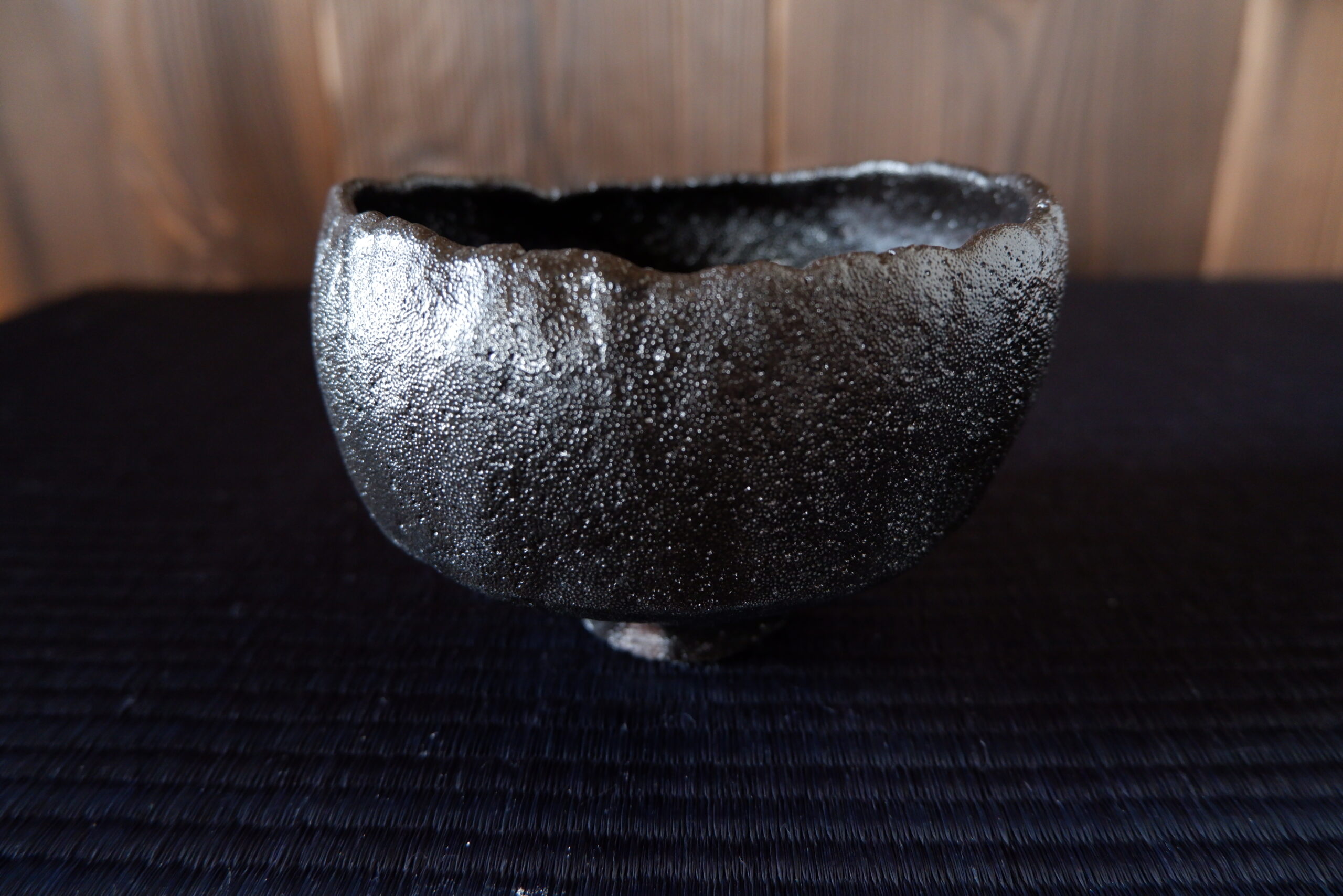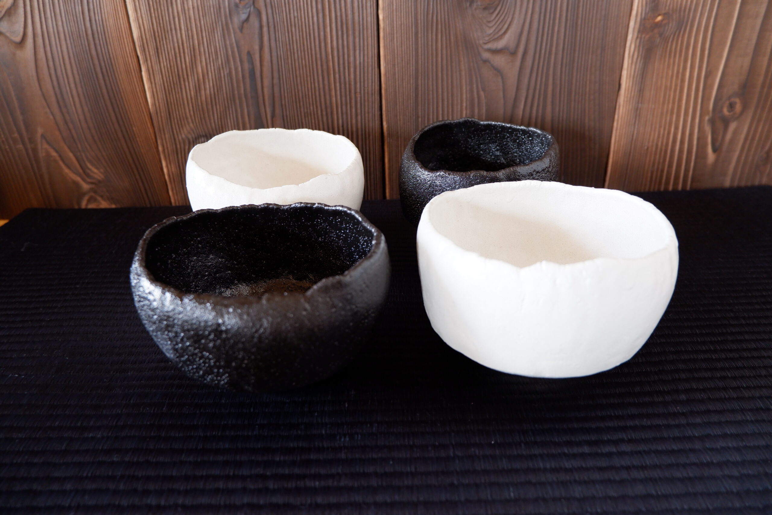 釉薬は小さい穴がプツプツと現れる柚子肌の黒と、白マット。