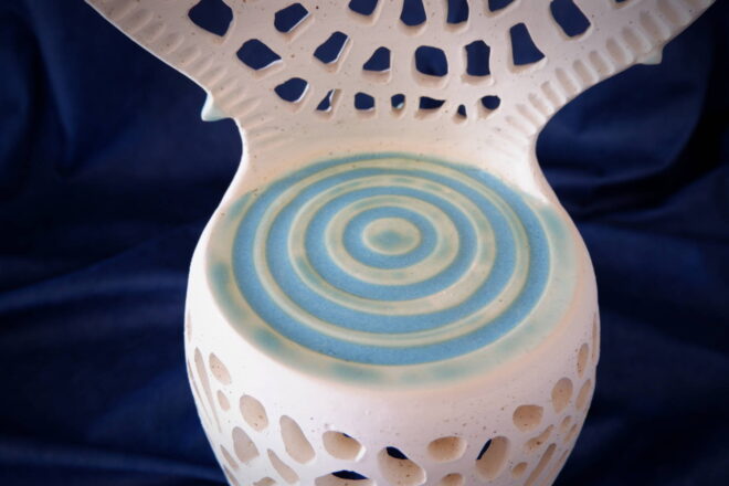 釉薬を掛けた方がより滑らかになるのですが、透明釉でも白い部分がクリーム色っぽく発色するので、その辺をどこまで譲歩できるかが課題です。